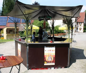 Unser Team liefert Ihnen die Bar, stellt sie mit Ihnen auf und baut sie auch wieder mit ab. Die Leihgebühr für die Bar beläuft sich auf 150 € + MwSt. pro Wochenende. Ab einem Verkauf von: 2000 Stk. Cocktails entfällt die Leihgebühr für die Bar ! |